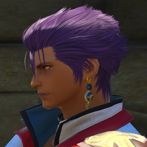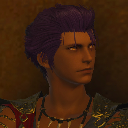 As expected of someone who hails from the great island of Thavnair, Naseer has a darker skin complexion than most people in Eorzea, perhaps quite similar to many Ala Mhigans. He stands at an even six fulms, which is quite a bit taller than the average midlander and weighs at approximately 180 ponz. Naseer's position in the Thavnairian military is physically demanding which attributes to his noticeably muscular tone.As a result of his mother having crimson hair and his father having deep blue hair, Naseer was born with a literal mixture of the two colours and ends up with a deep violet, something that he is proud of for being unique. Especially so since both of his brothers have deep blue hair, like their father. Like everyone else in the family, however, he also sports amber-coloured eyes which he is also proud of for the simple fact that it isn't very common.